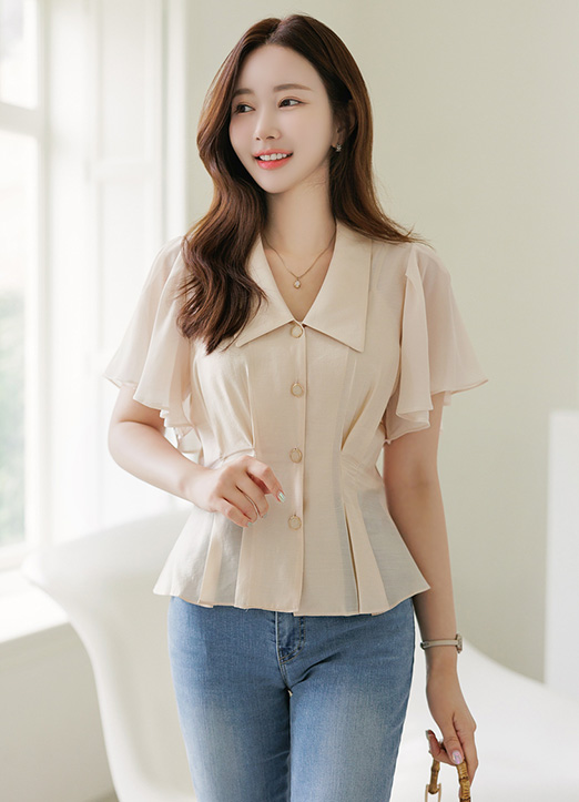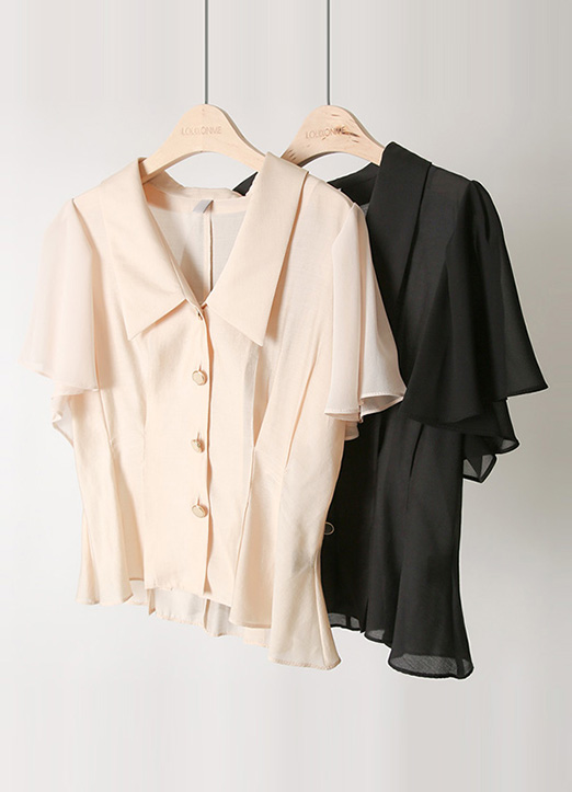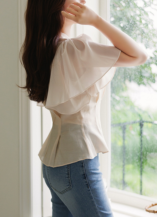 쉬폰 소재의 날개 소매로 여리함이 가득 느껴지는 블라우스에요 :)
