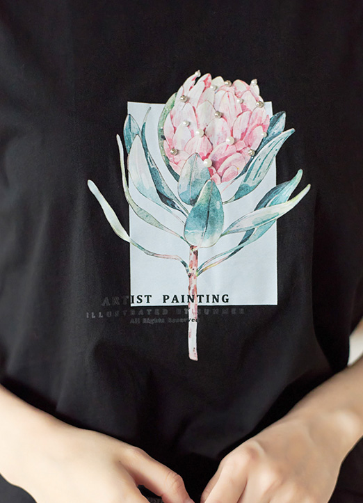 연꽃 프린팅에 큐빅&진주로 화사한 포인트를 준