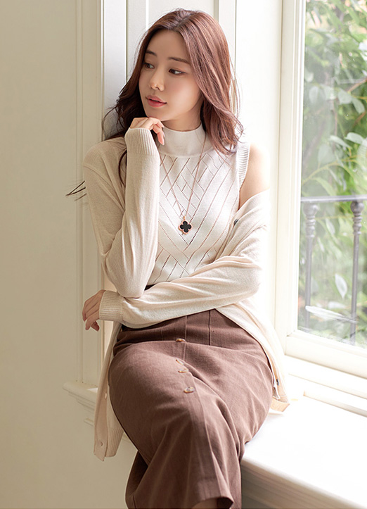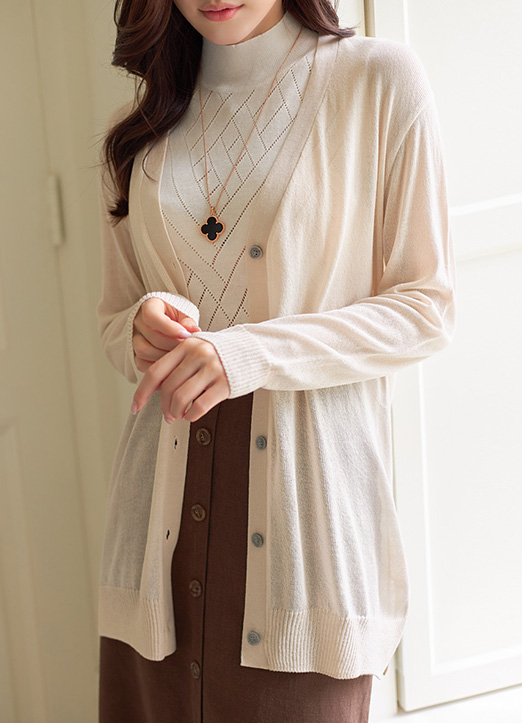 [用透视轻薄的针织材质编织,适合日常穿着的长款开衫~ 稍微宽松一点的款式,轻薄的重量感!越穿越满意的。]