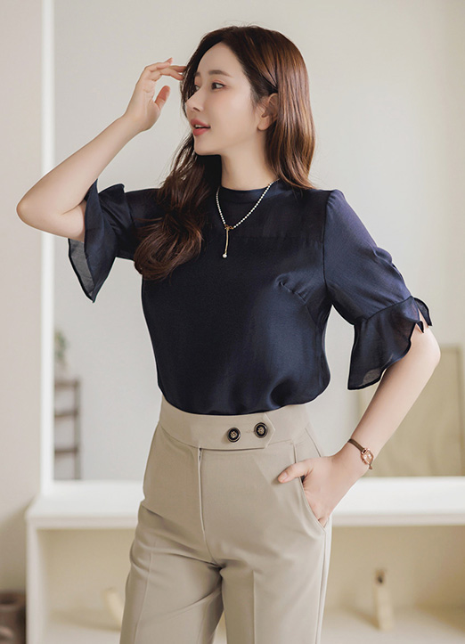 플레어 소매로 여리한 실루엣을 연출해주고