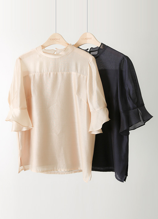 시스루가 레이어드되어 페미닌함이 가득한 블라우스에요 :)