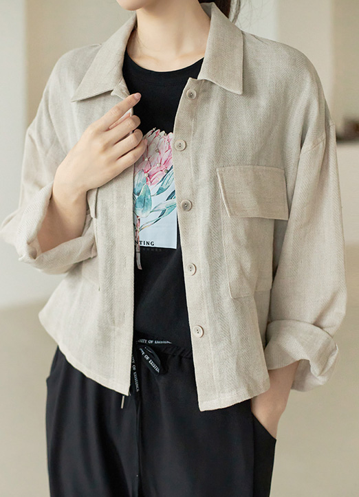 亚麻人字纹宽松衬衫夹克