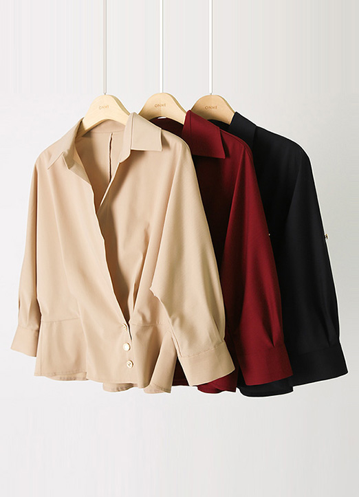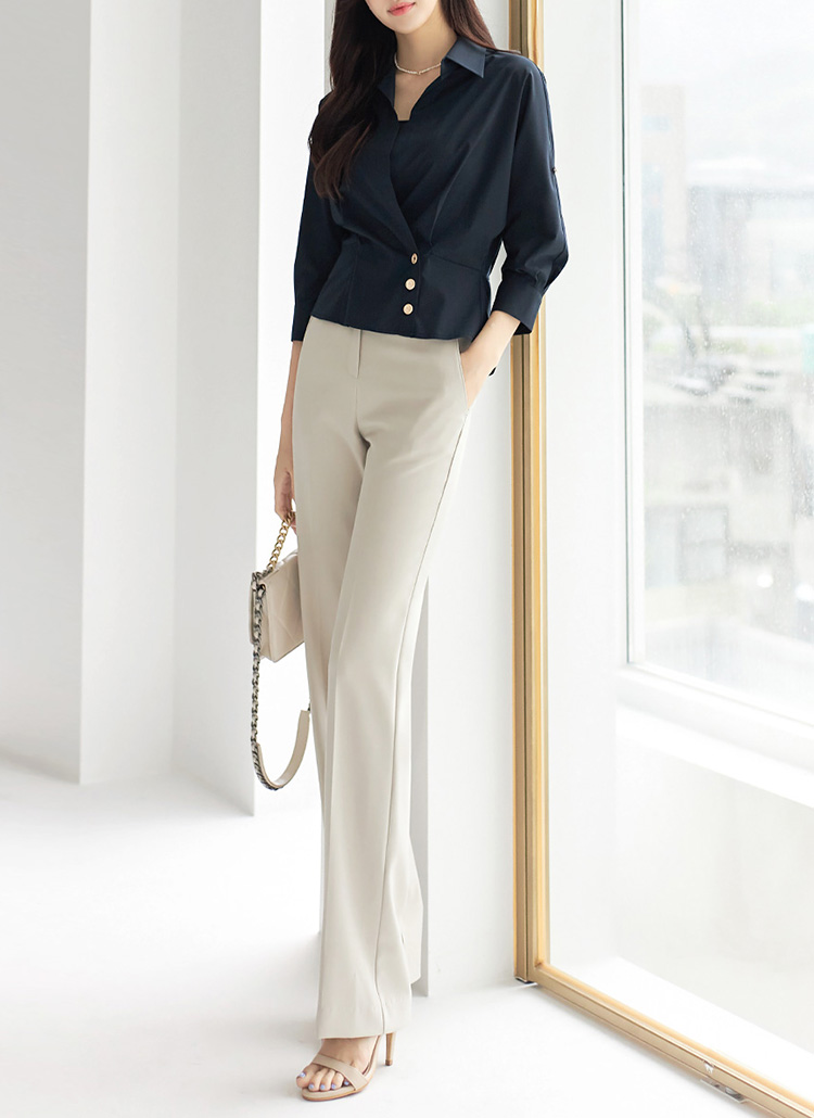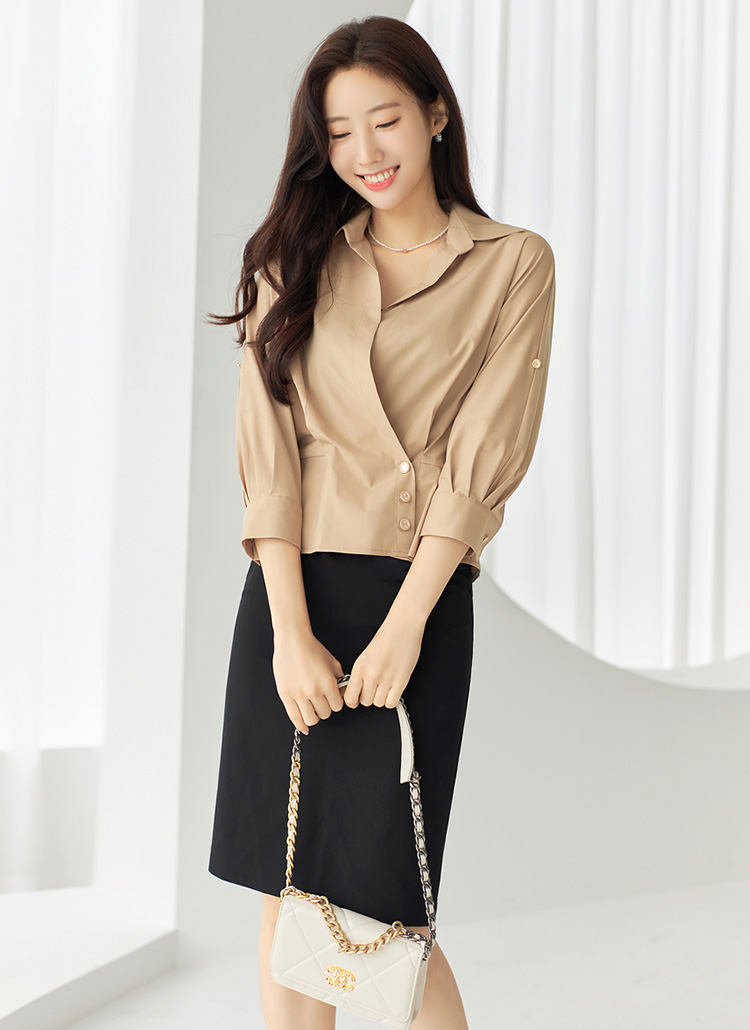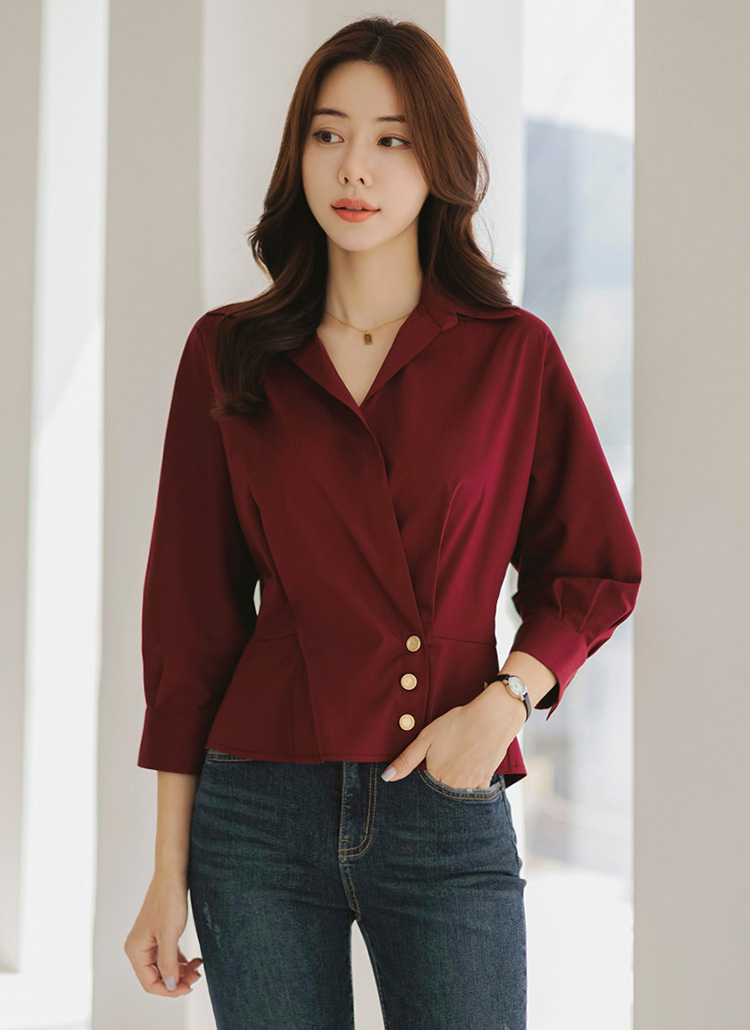 [Louis Angel] 裹领金色纽扣7分卷袖衬衫