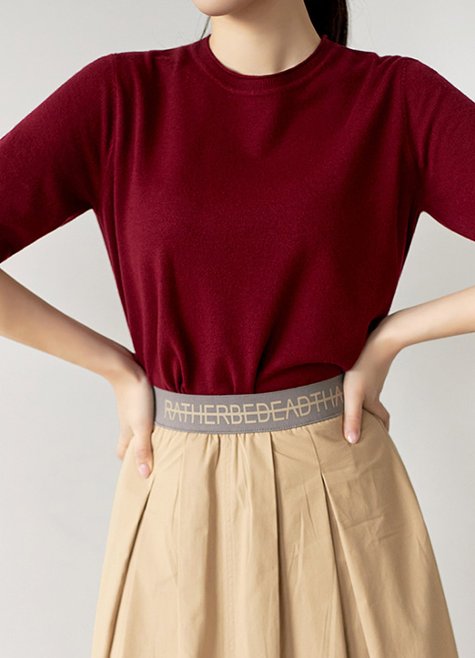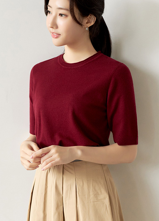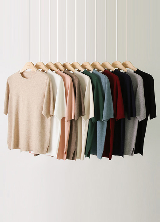 [纤维材质,穿着非常柔软,简洁的标准版,哪里都可以很好的搭配,遮盖手臂赘肉的袖长,没有负担,换季期也适合作为打底针织衫穿着。]