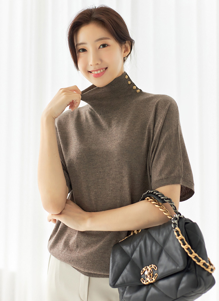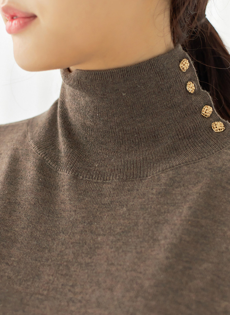 골드버튼이 더해진 폴라넥이 고급스러운 니트에요 :)