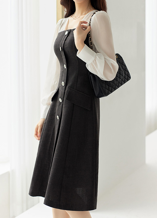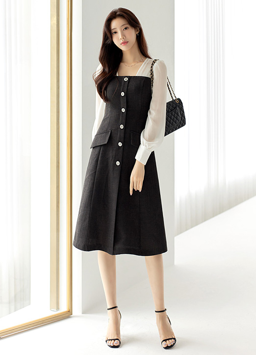 스퀘어넥으로 페미닌함이 느껴지며