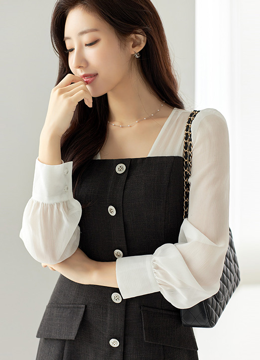 시스루 쉬폰이 레이어드되어 여리함이 더해진