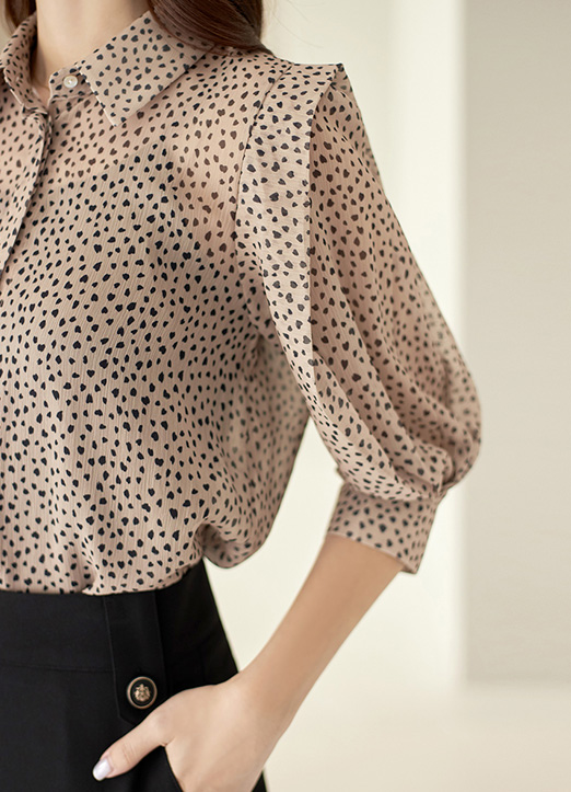 [平静的豹纹图案更加时尚~像叠花瓣一样有立体感的泡泡袖,适合帅气享受的雪纺衫~简洁又舒适的穿着感,适合搭配多种风格。]