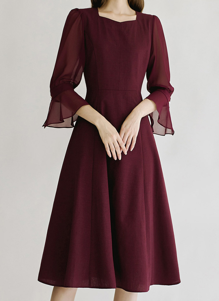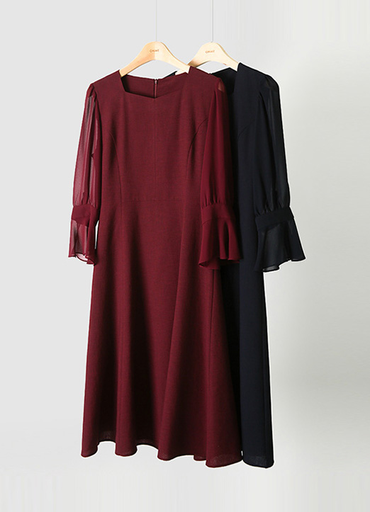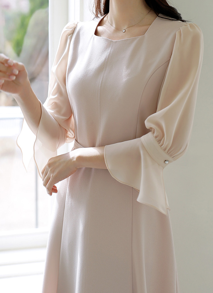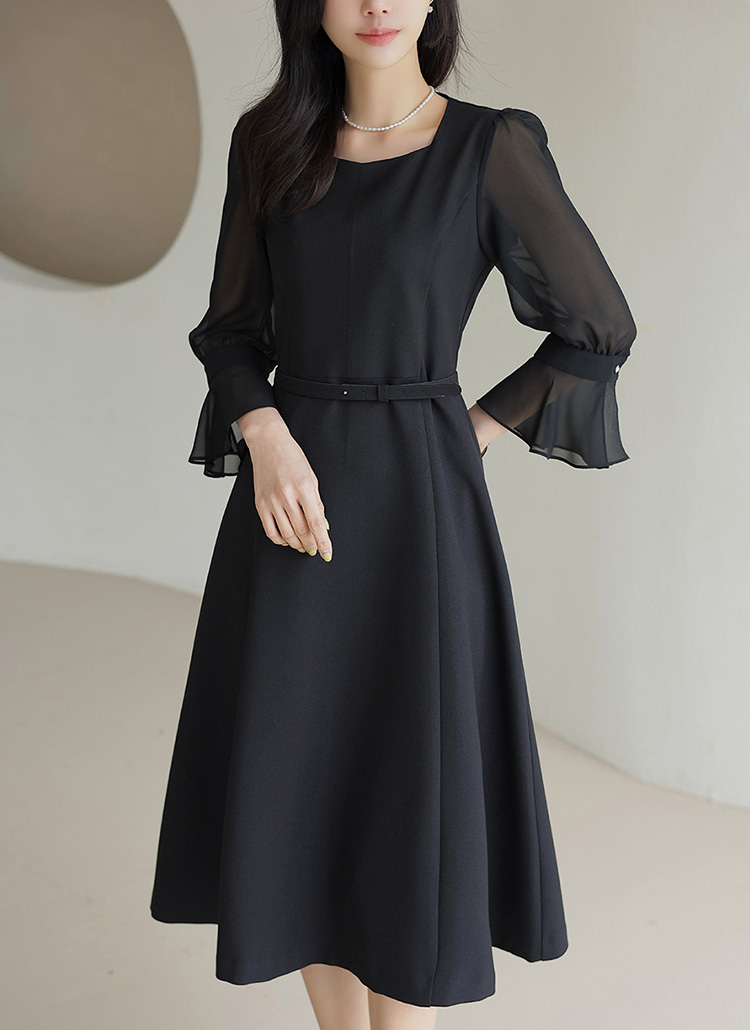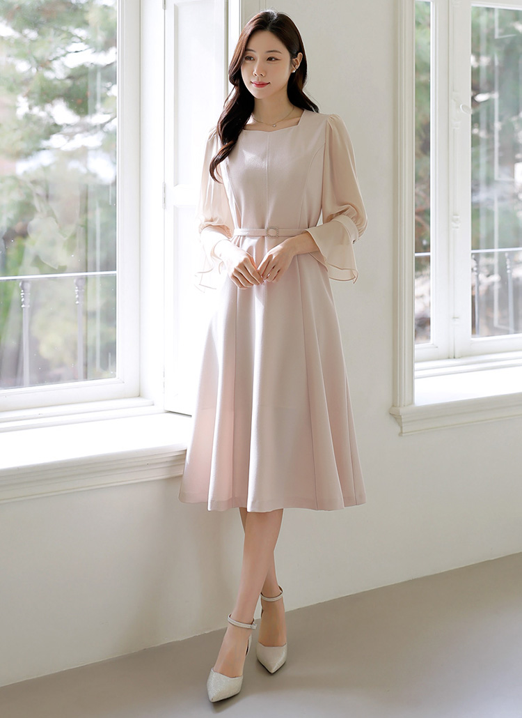 [Louis Angel] 雪纺袖宽袖口腰带套装连衣裙