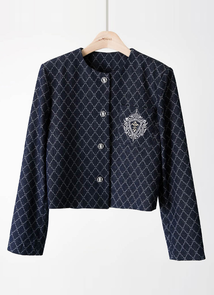 [Louis Angel] 菱形纹无领牛仔短款夹克