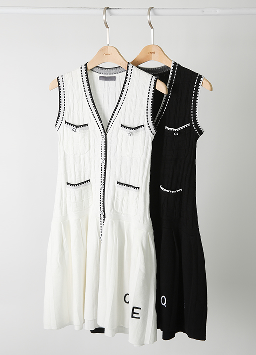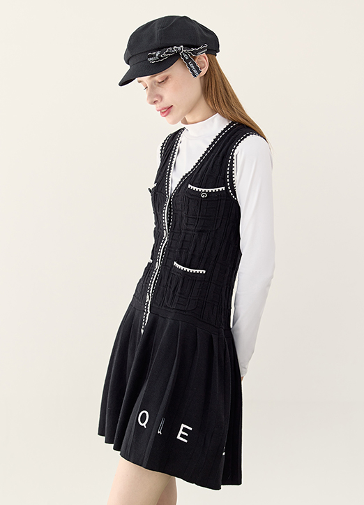 [QoG] 高尔夫V领刺绣针织连衣裙