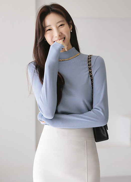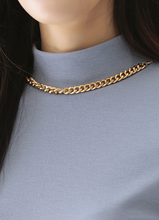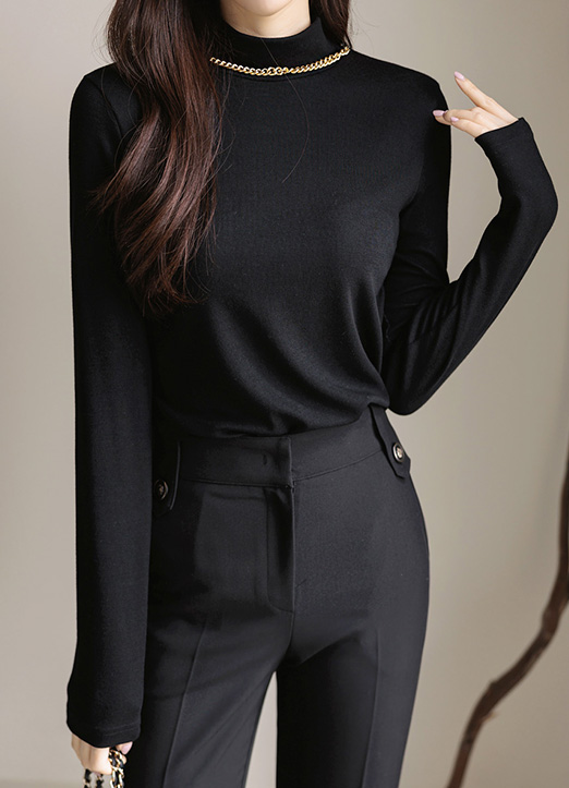 [以可拆卸的金色链条项链细节,适合以时尚干练的风格享受的半高领T恤~ 简约且基本款,可以展现出与众不同的魅力满分T恤!]