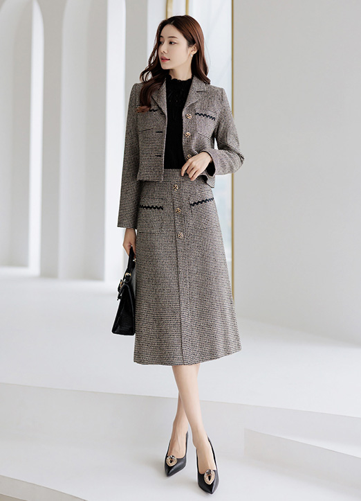 울이 혼방된 트위드 소재로 탄탄하고 높은 퀄리티가 느껴지며
