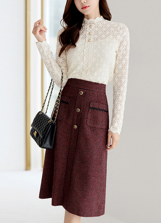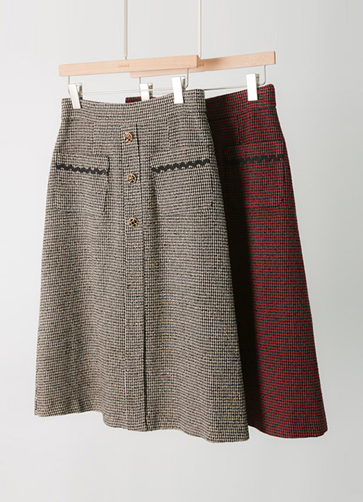 [LouisAngel] 格纹珠宝扣A字型粗花呢半身裙