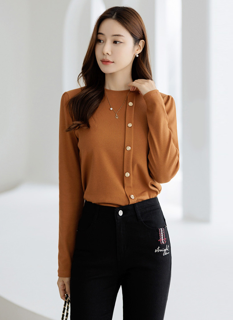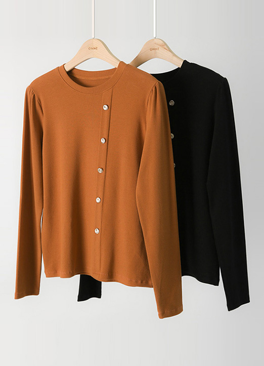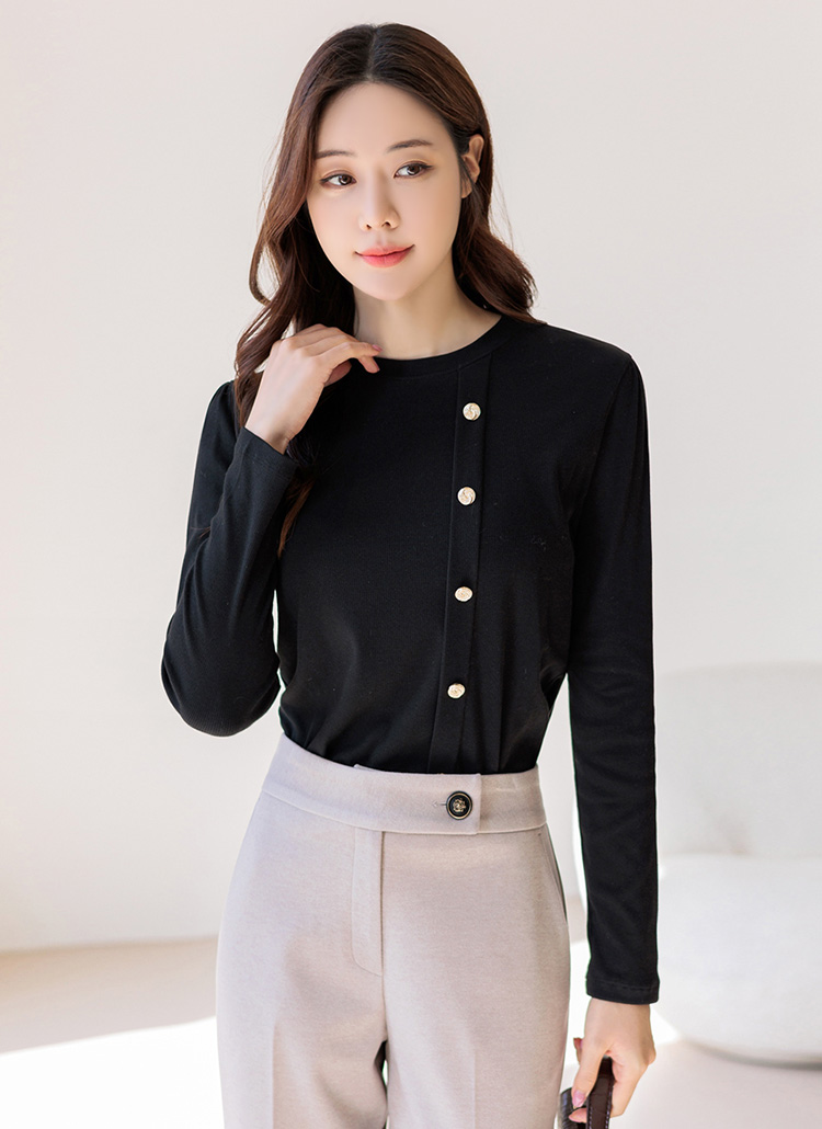 [LouisAngel] 单排金色扣弹力圆领T恤