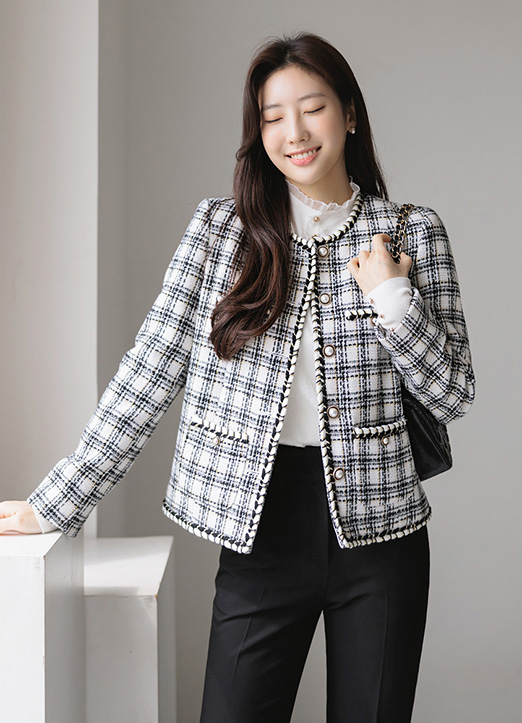 적당한 두께감으로 나와 지금부터 초겨울까지 꾸준~히 입기 좋은 트위드 자켓이에요