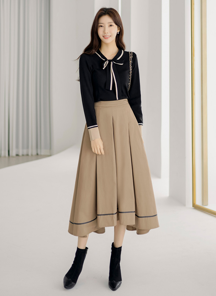 어디든 매치하기 좋으며, 배색 라인으로 패턴감을 더해주었어요