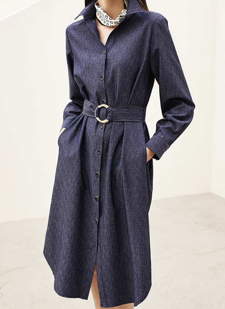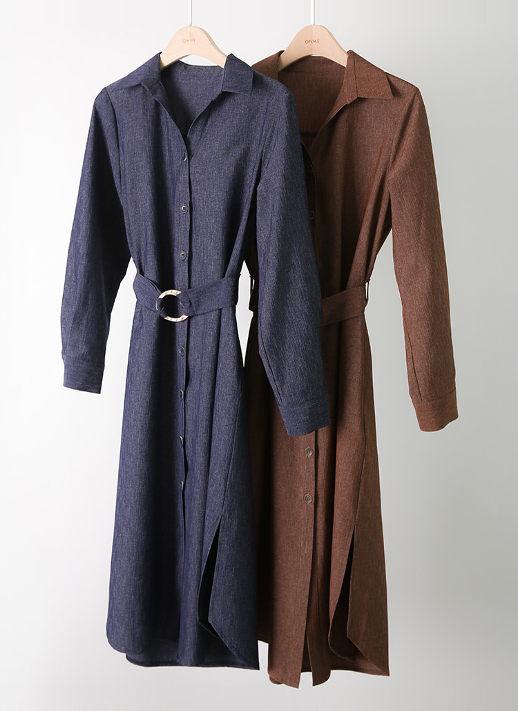 [Theonme] 柔软如丝衬衫腰带连衣裙