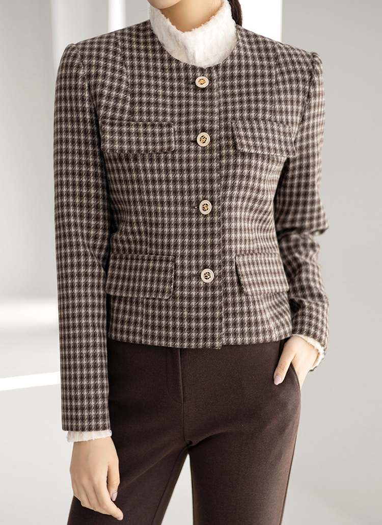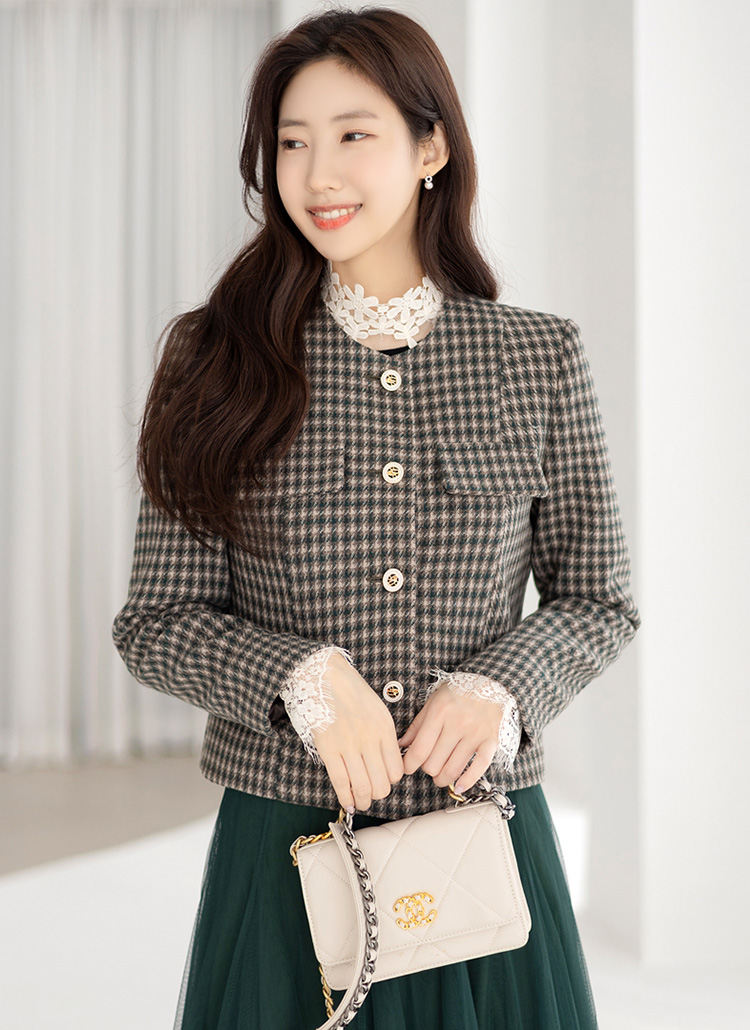 [LouisAngel] 羊毛混纺格纹短款夹克