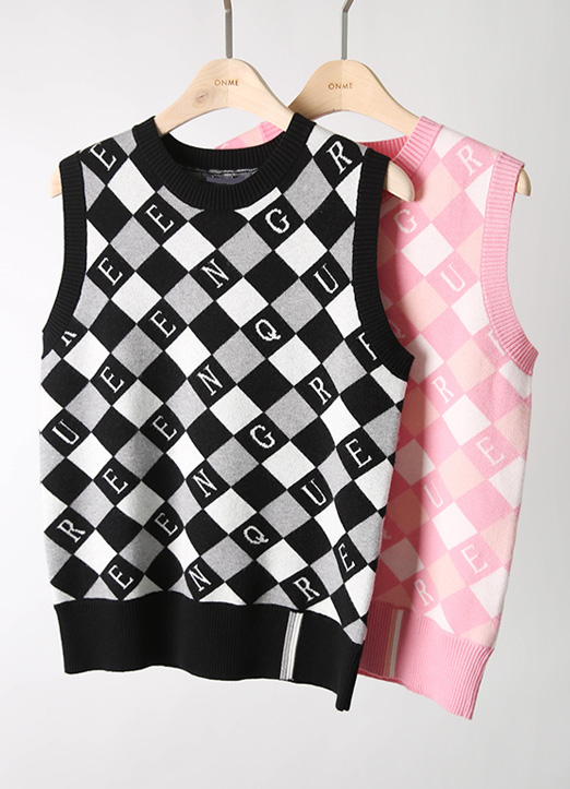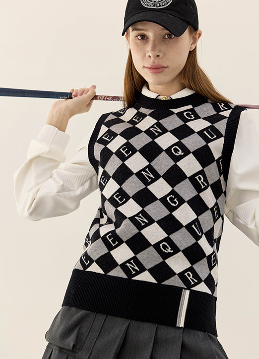[QoG] 高尔夫英文字母格子针织马甲