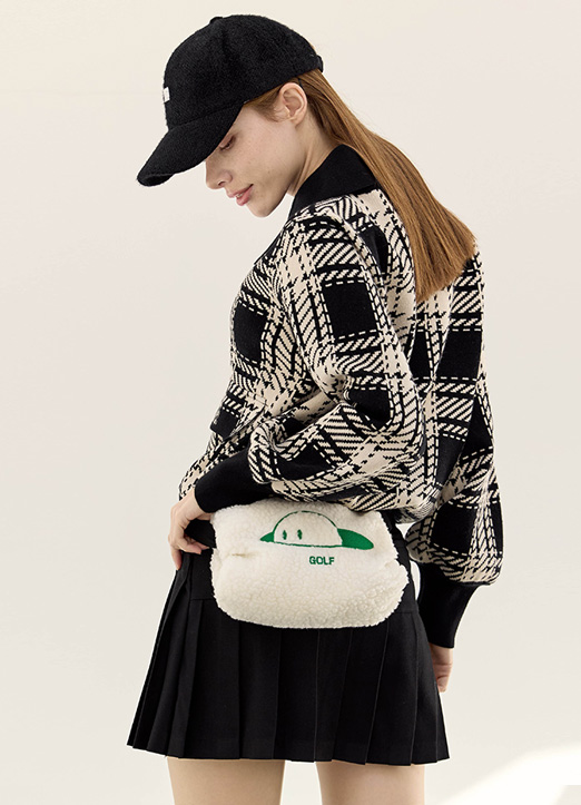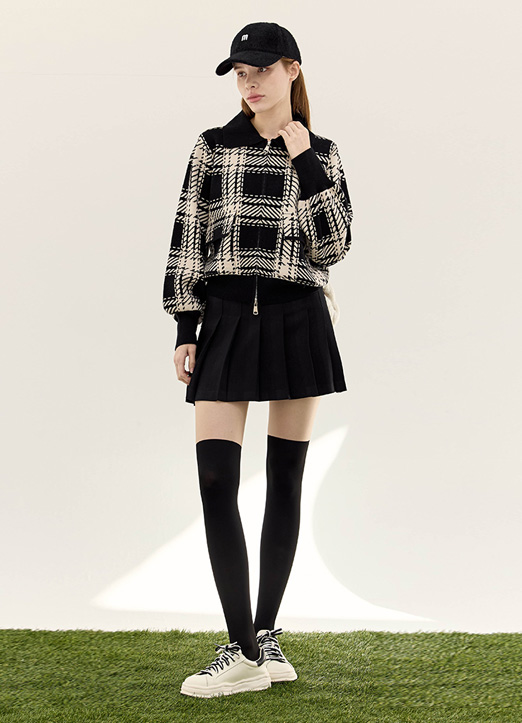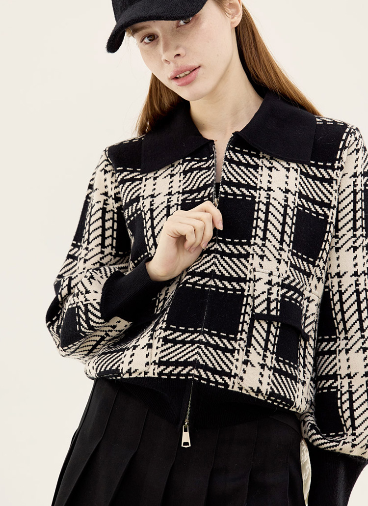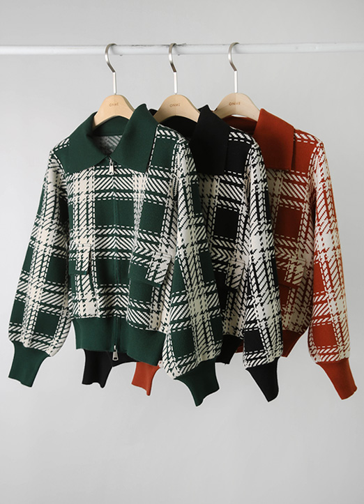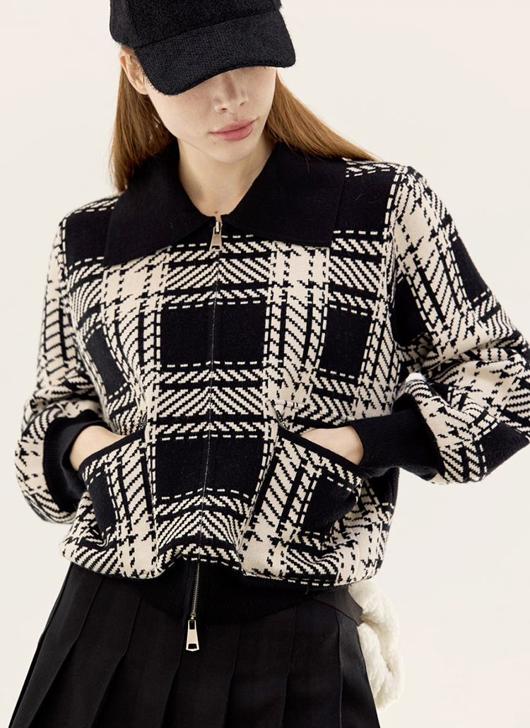 [QoG] 高尔夫粗花妮格纹拉链针织开衫