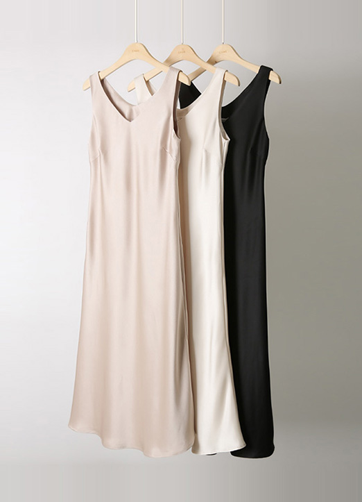 간절기에 활용하기 좋은 새틴 뷔스티에 원피스에요~