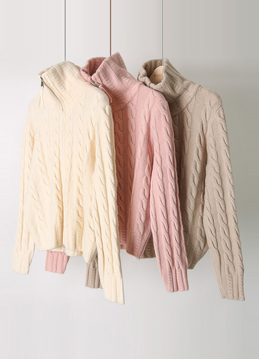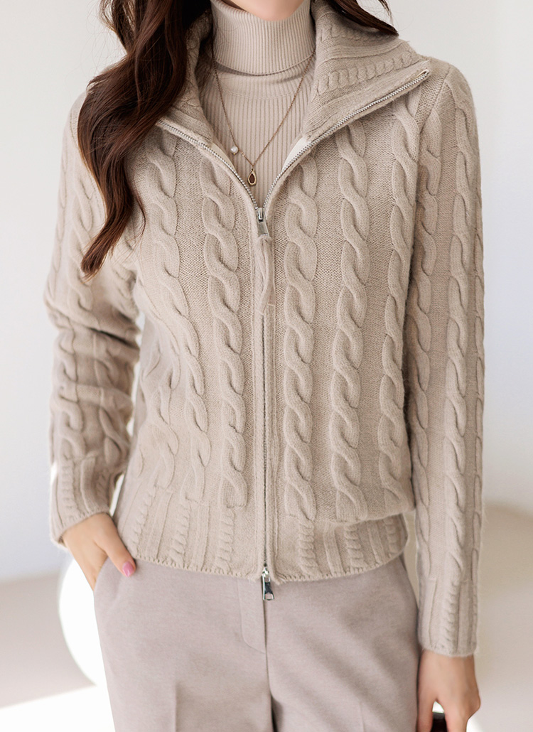[粗麻花纹编织,穿着更加结实, 高领拉链可以展现多种风格的开衫:) 下摆松紧带稍微抓住了线条,不会显得臃肿。]
