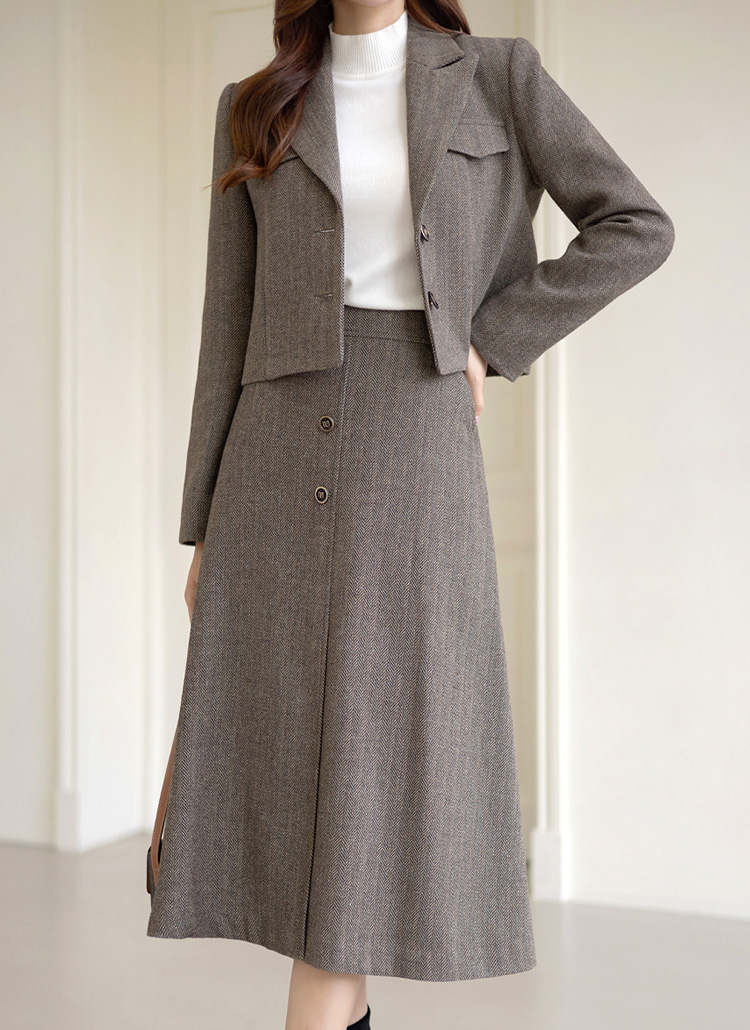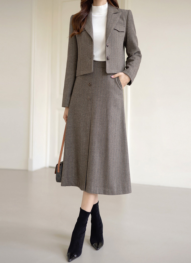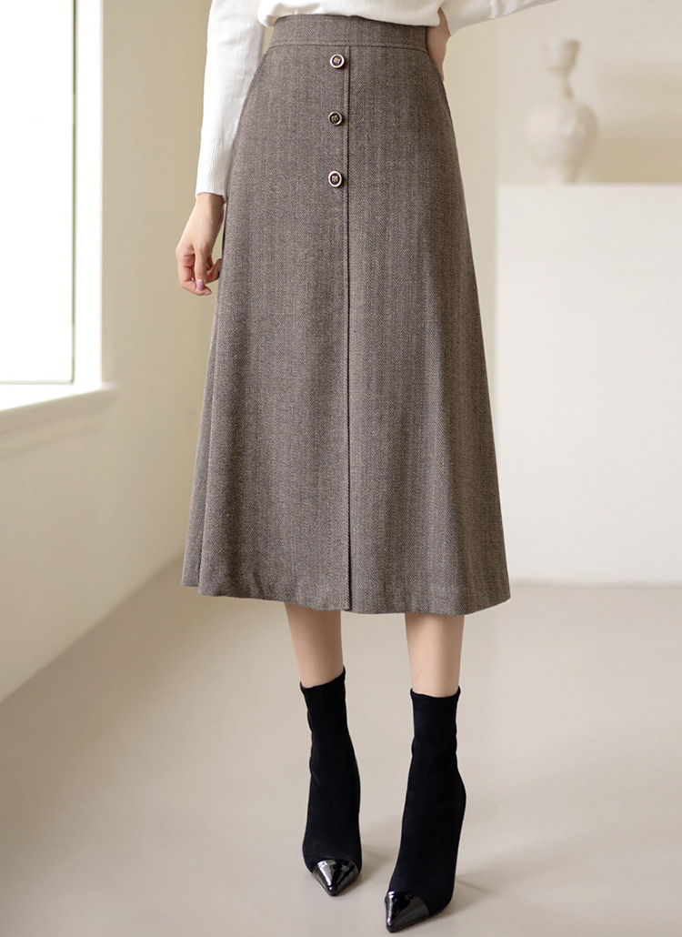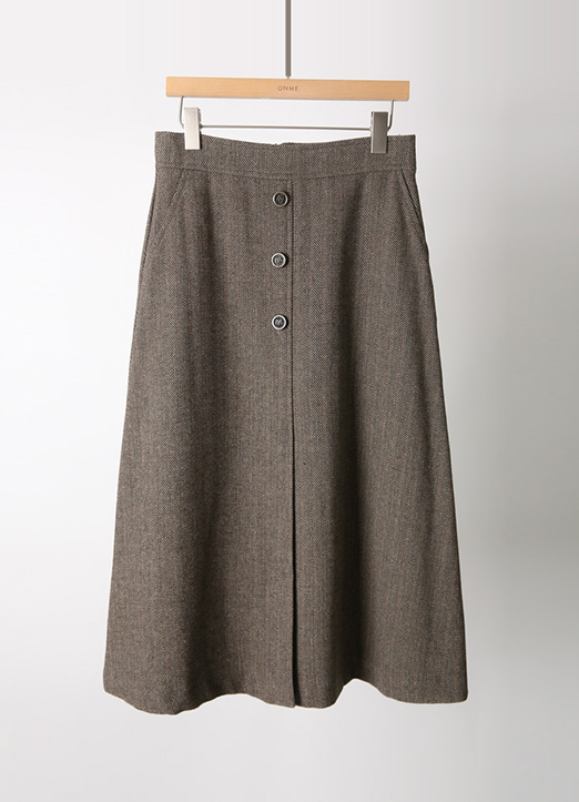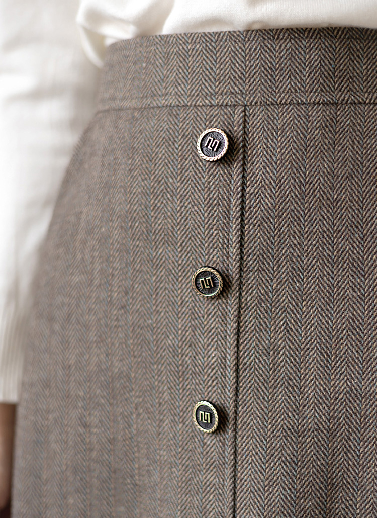 [LouisAngel] 羊毛混纺人字纹L线条中长裙