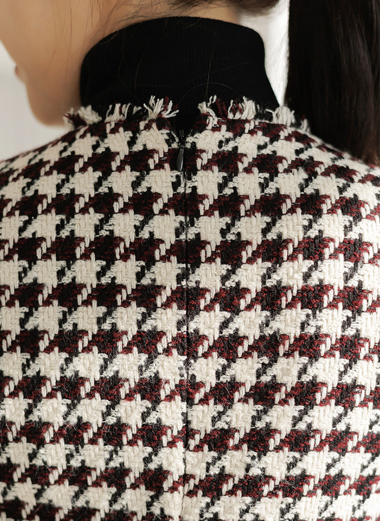 와인 컬러의 제비체크 패턴이 따스함을 더해주고