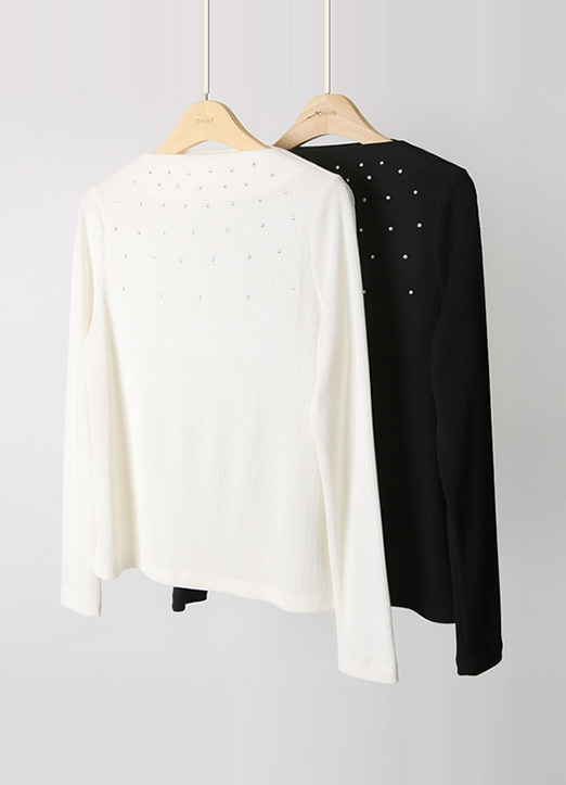 [LouisAngel] 圆点锆石点缀圆领条纹T恤