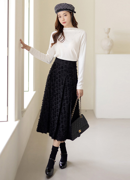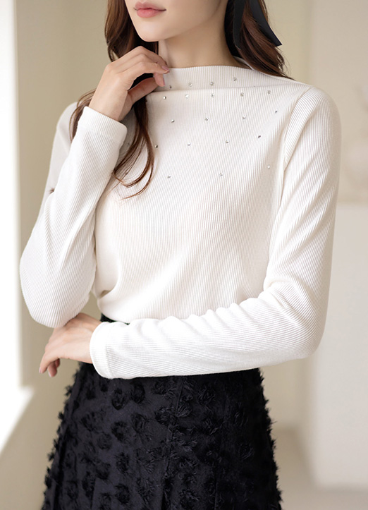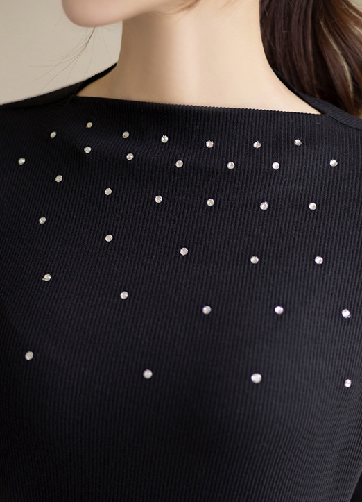 [部分圆点图案的宝石感性又闪亮~成为漂亮的亮点,以简洁外观的船形领设计,到处都可以轻松搭配,活用度Up!]