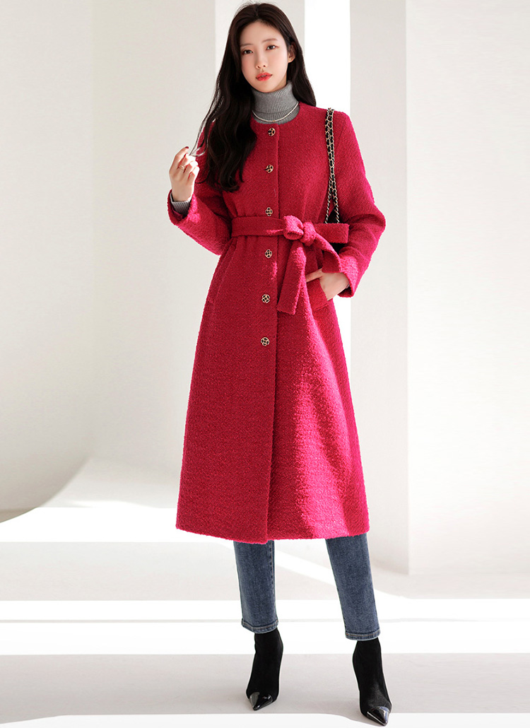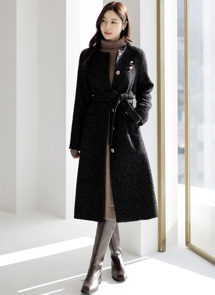 [LouisAngel] 羊毛混纺腰带套装粗花妮长款外套