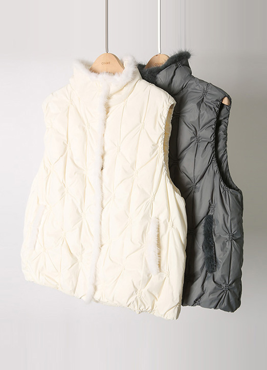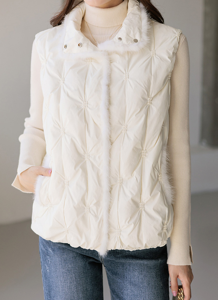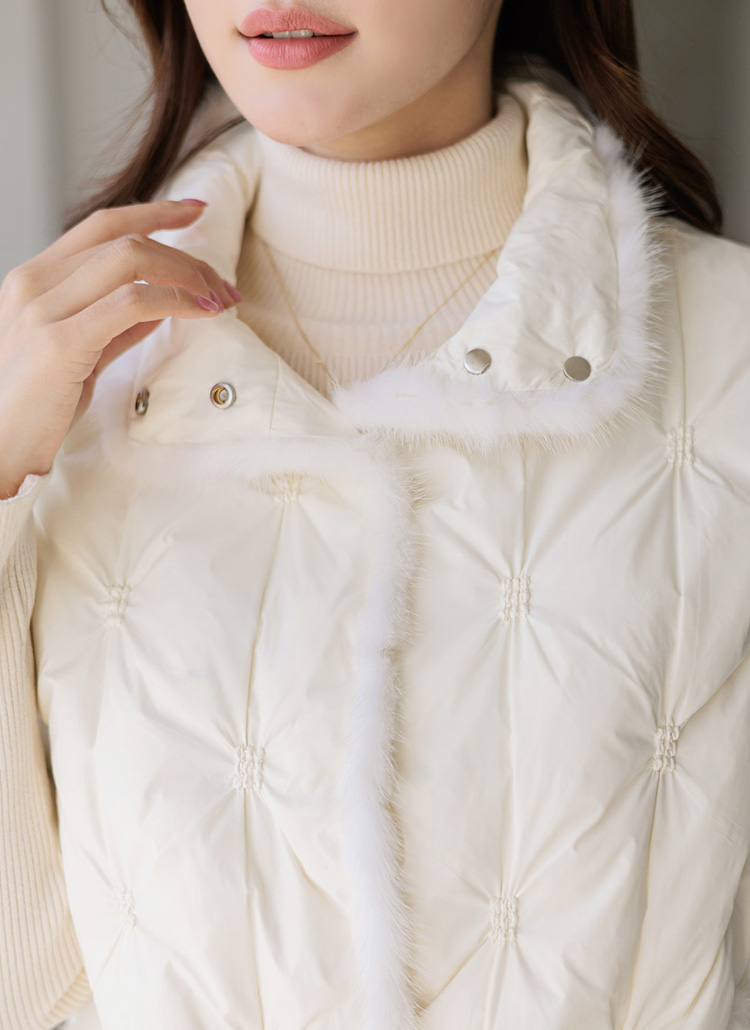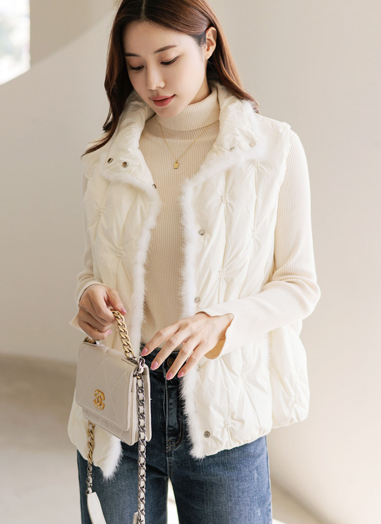 [用亮丽的毛增添保暖氛围的鸭绒羽绒服马甲:) 轻便的重量感,可随意披上,高领设计可以挡住冷风。]