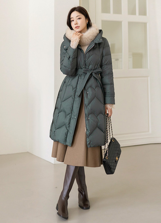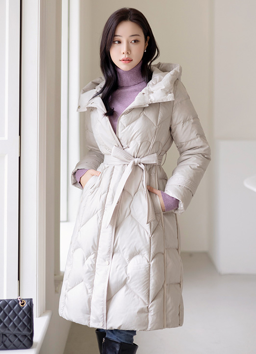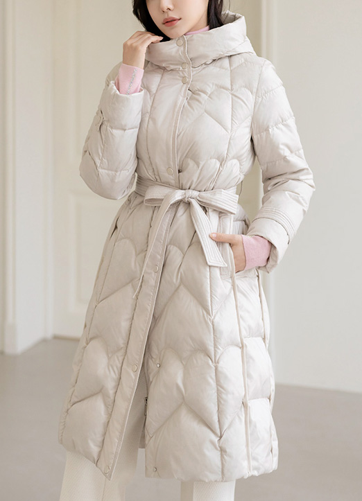 [LouisAngel] 心形绗缝连帽长款鹅绒填充外套