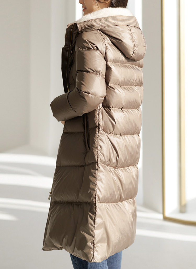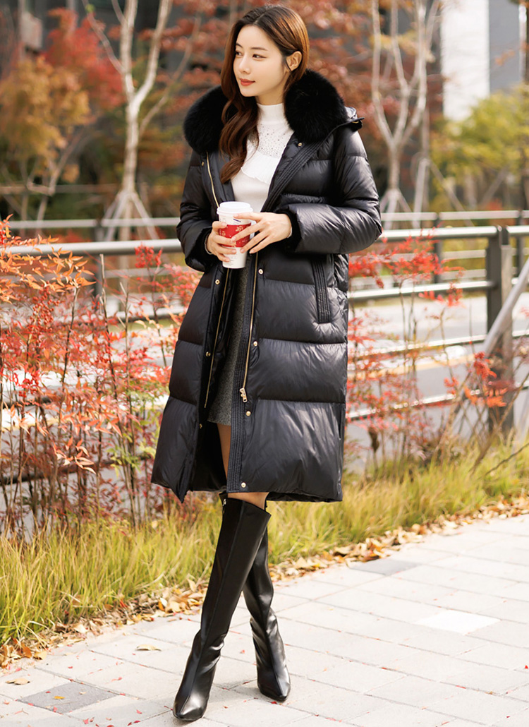 [LouisAngel] 狐皮毛领连帽长款鹅绒填充大衣