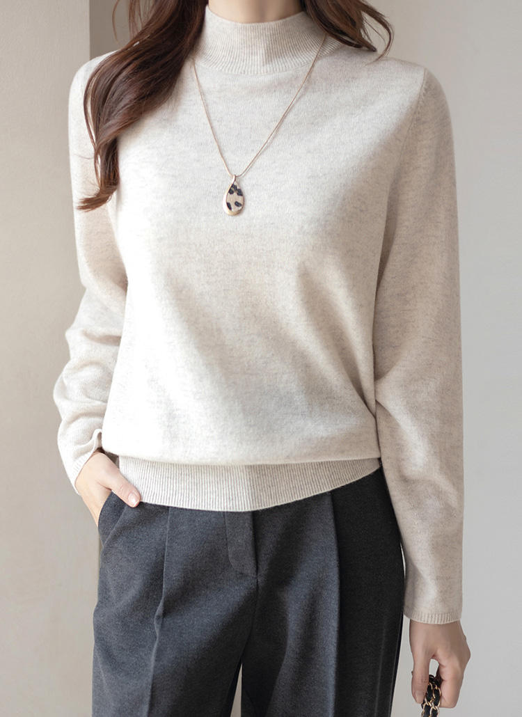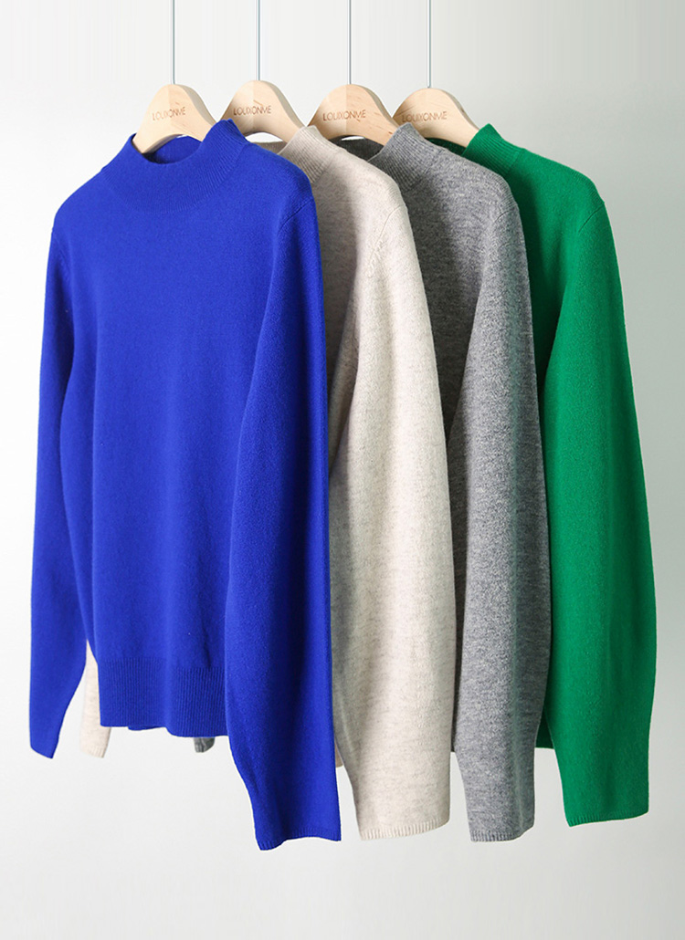 [柔软的触感~轻便又保暖的穿着感,心情非常好,可以舒适的穿着,越穿越满意。稍微上扬的半高领加上半宽松范儿设计,展现干练的风格。]