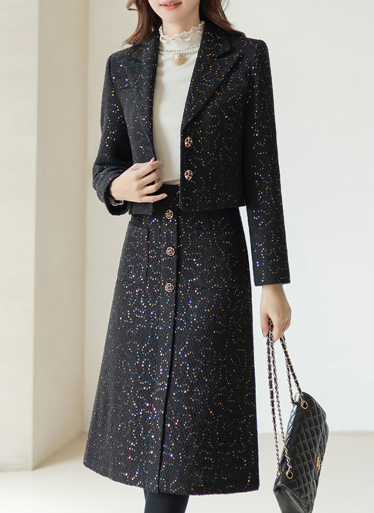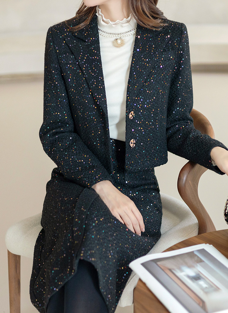 [LouisAngel] 华丽亮片中长翻领短夹克