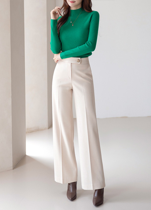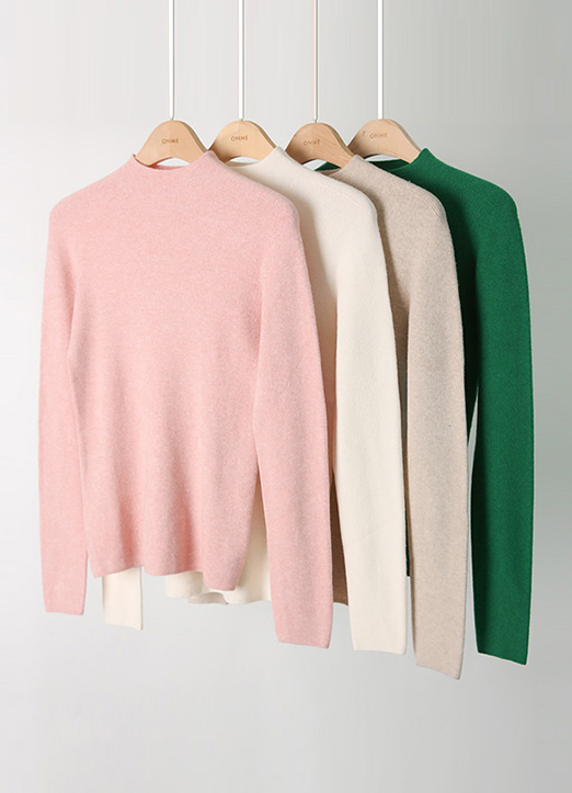 울이 블렌딩 되어 더 가볍고 따스하게~착용되는 반하이넥 니트에요