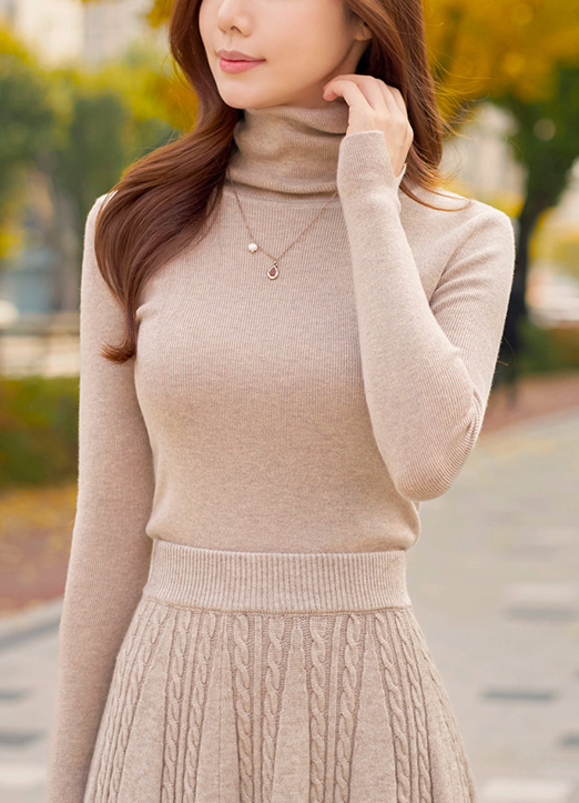 울이 혼방되어 톡톡한 골지 폴라 니트와