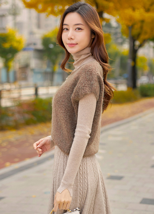 高领针织衫&羊绒针织马甲2件套装