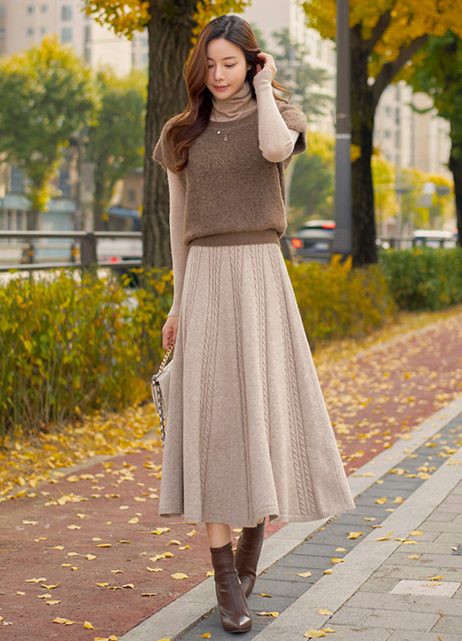꽈배기 패턴의 플레어 니트 스커트에요 :)