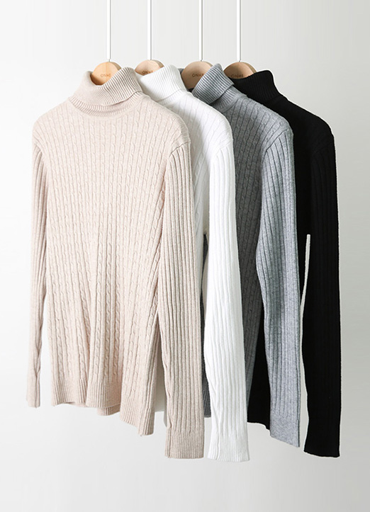 도톰한 골지 원단의 폴라넥 디자인으로