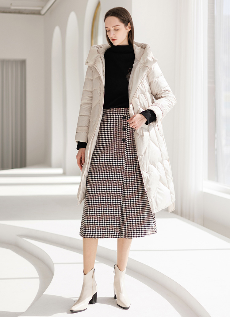[从腰部到骨盆都顺滑地收住,向下隐隐散开的L型设计,不显臃肿的、有女人味的轮廓,适合享受,穿着舒适,所以会更满意的。]