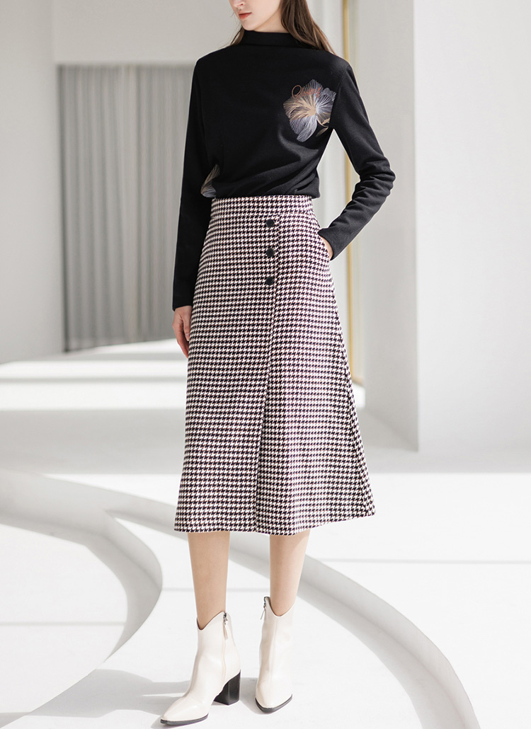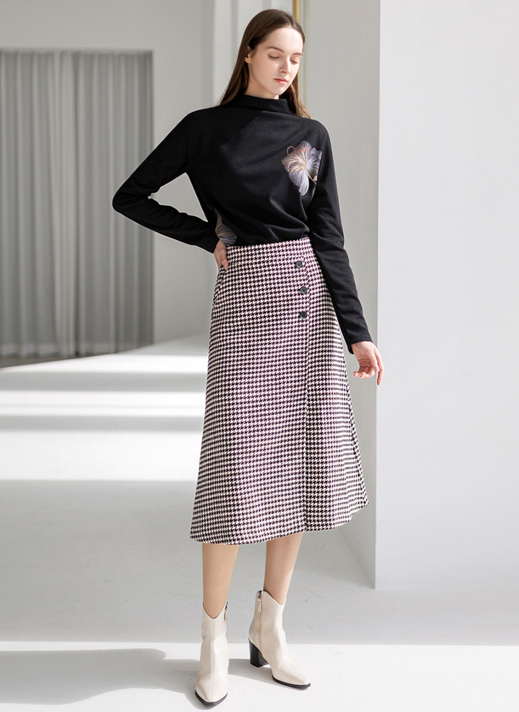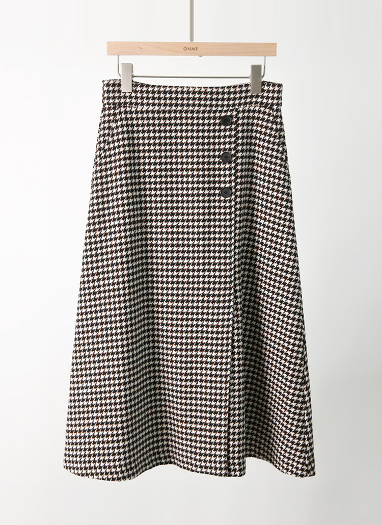 [Theonme] 双色犬牙格纹侧面扣L线条长裙