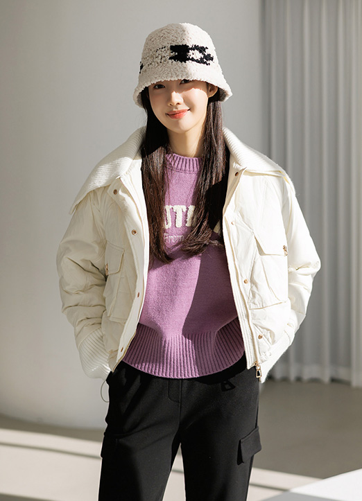 復古風格寬領羽絨服