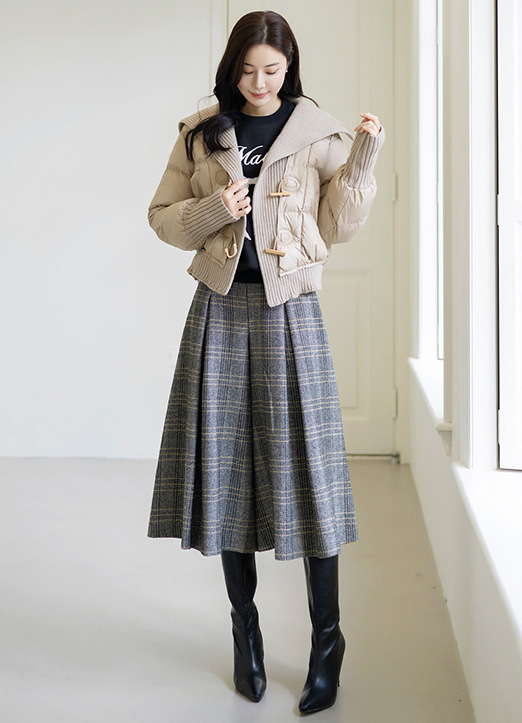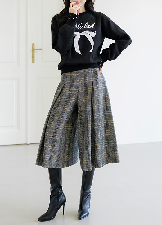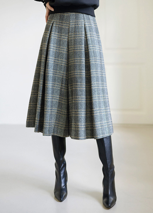 [LouisAngel] 모드앤 울블렌딩 체크 헤링본 8부 맞주름 치마 바지 슬랙스