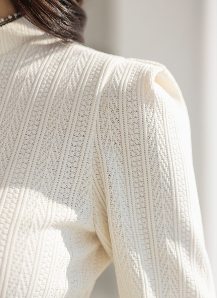 어깨에 핀턱 디테일로 페미닌한 라인을 살려주며
