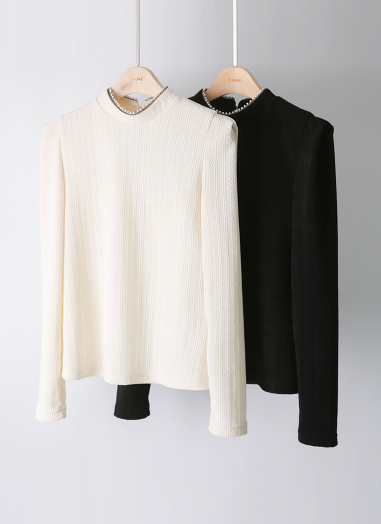 [LouisAngel] 포에디 메탈 펄 진주넥 쟈가드 패턴 티셔츠