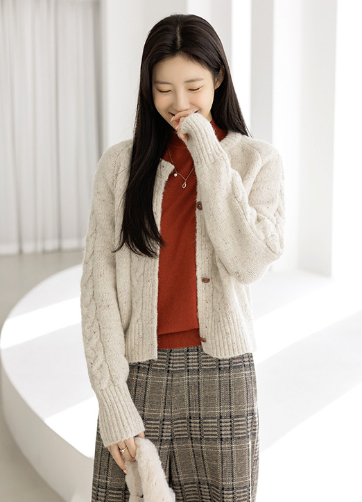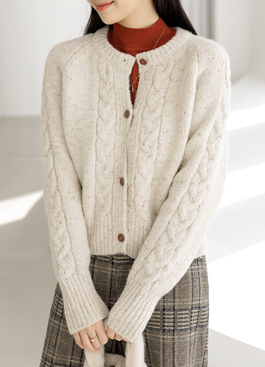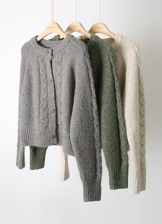헤브드 울 도톰 꽈배기 나그랑 니트 가디건