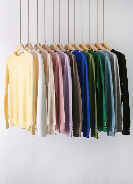 [Theonme] 환상의 터치감! 비스코스 금장단추 트임 라운드 니트_12color